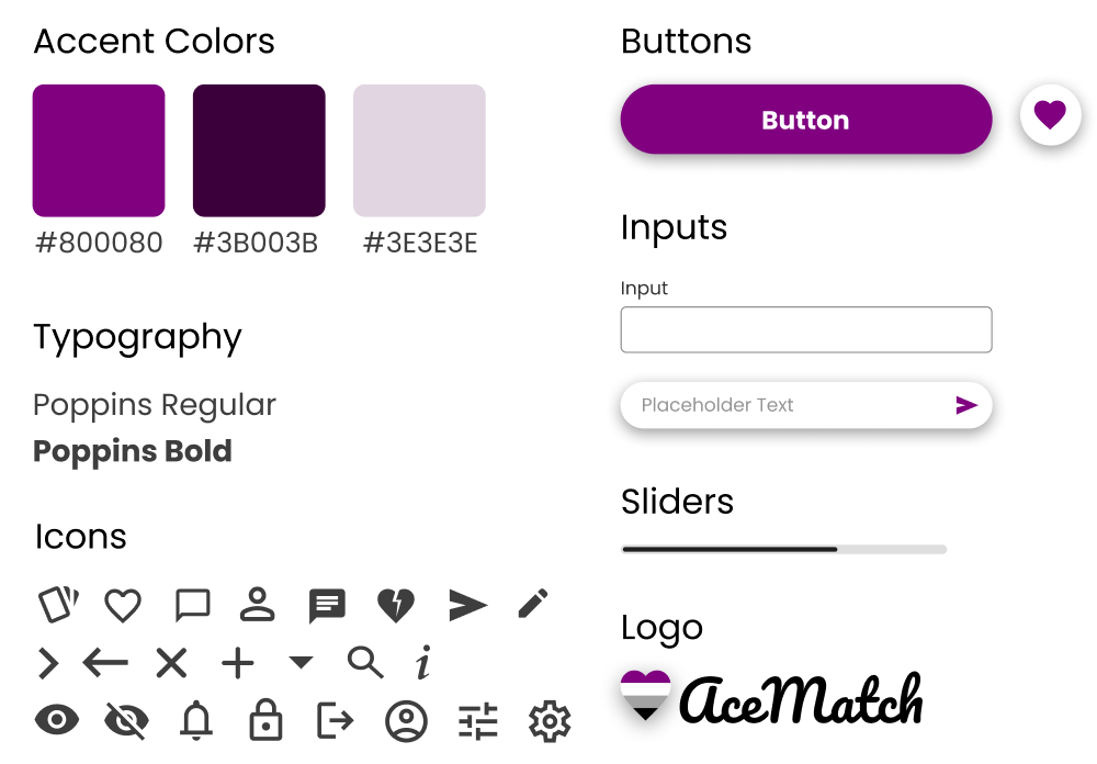 To create a consistent and enjoyable user experience, I developed a style guide using colors inspired by the Ace flag.