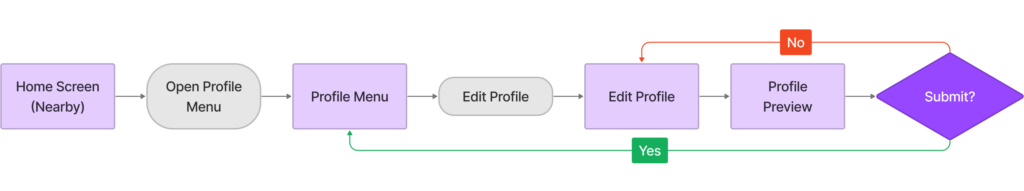 As this project was quite large, it was important for me to understand the structure of the app before designing. To create an intuitive experience, I used user flows to visualize how users could interact with my app to prevent any unnecessary steps.