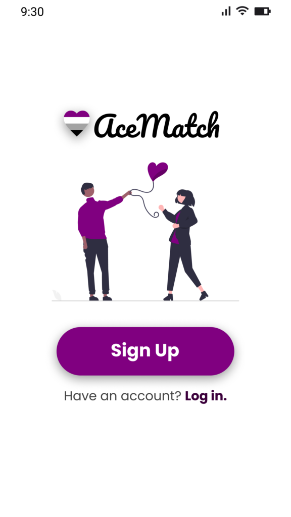 The competitive analysis revealed that existing asexual dating apps lacked modern design and branding. To stand out from the competition, I designed an app with an engaging user interface and attractive visuals. In the Welcome Screen, I used friendly cover art and Ace flag colors to create a warm and welcoming atmosphere.