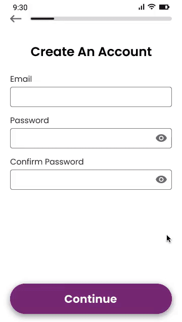 After the usability studies, the onboarding screens were improved with user-requested features. Users can now select up to six profile pictures and enter a 150-character bio. Other changes included adding a profile preview, number sliders, and password reveal button to improve usability.