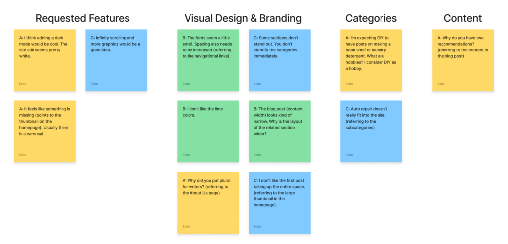 Once again, I used an affinity diagram to categorize participants’ feedback into common themes.