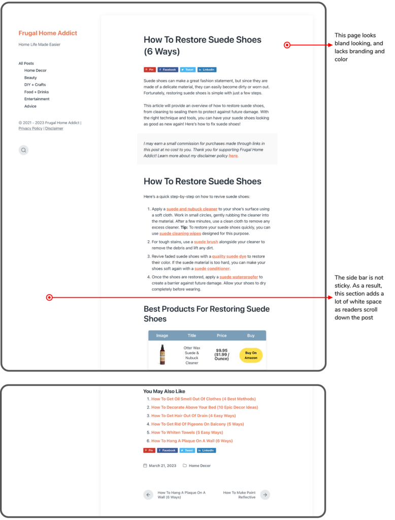 As Frugal Home Addict’s traffic is primarily organic, the blog post is often the first point of entry for new readers. Therefore, it is crucial to make a favorable first impression.