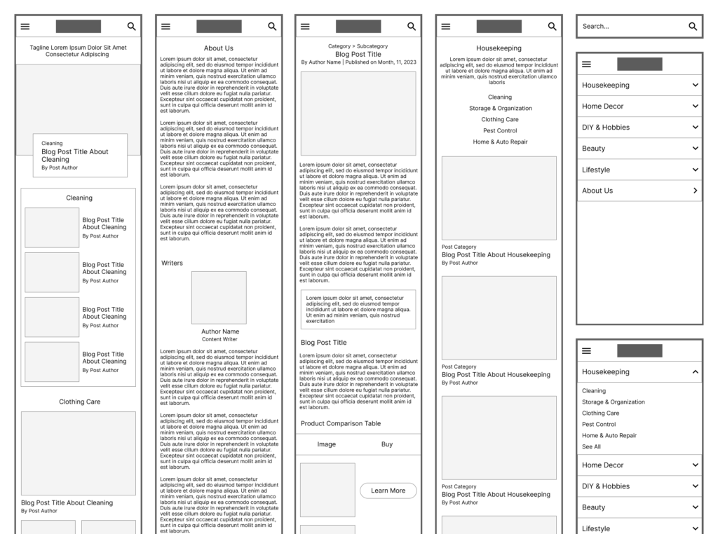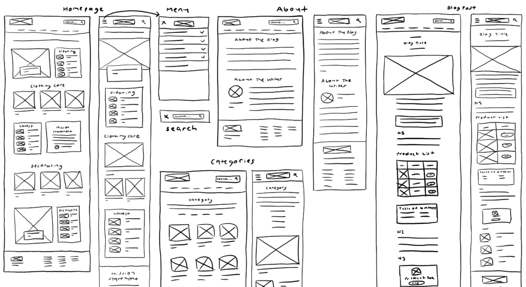 Sketching allowed me to quickly generate multiple potential layouts for Frugal Home Addict.